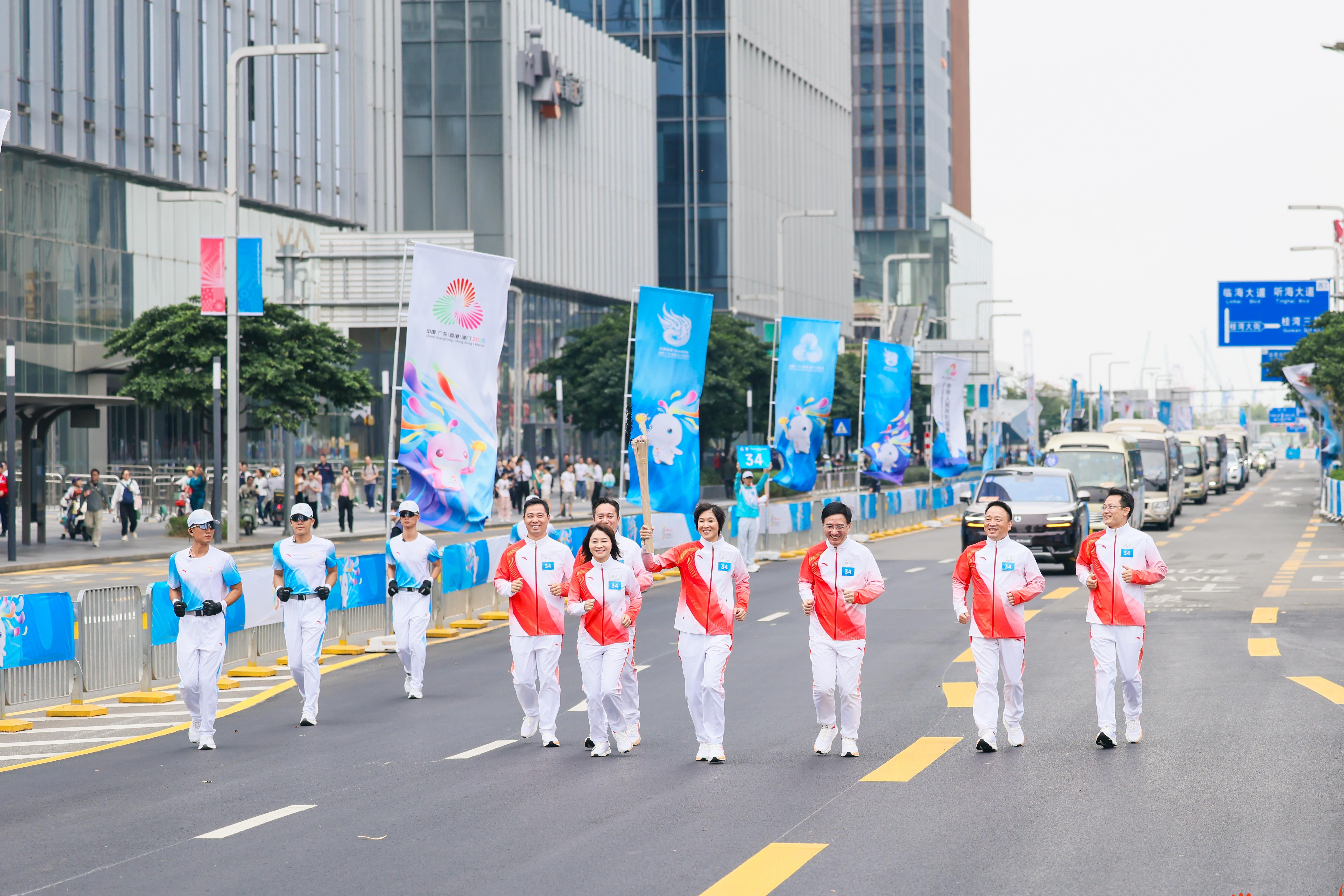 十五运会深圳赛区火炬传递活动在莲花山公园启动,于前海国际会议中心收火,全程展现了深圳“开放之城、科技之城、创新之城”的发展历程与城市特色。路线采用“三站联程・山海连城”的创新设计,全长45公里,巧妙呼应深圳经济特区45周年的发展历程。传递过程以“改革之路·勇”“开放之路·闯”“创新之路·融”三大主题层层展开。毛军发、李秋实所在的志愿者火炬手方阵均在第三段“创新之路·融”主题部分进行火炬传递,这正与深圳大学的基因不谋而合——创新,是深大与生俱来的血脉,也是我们面向未来的誓言。
