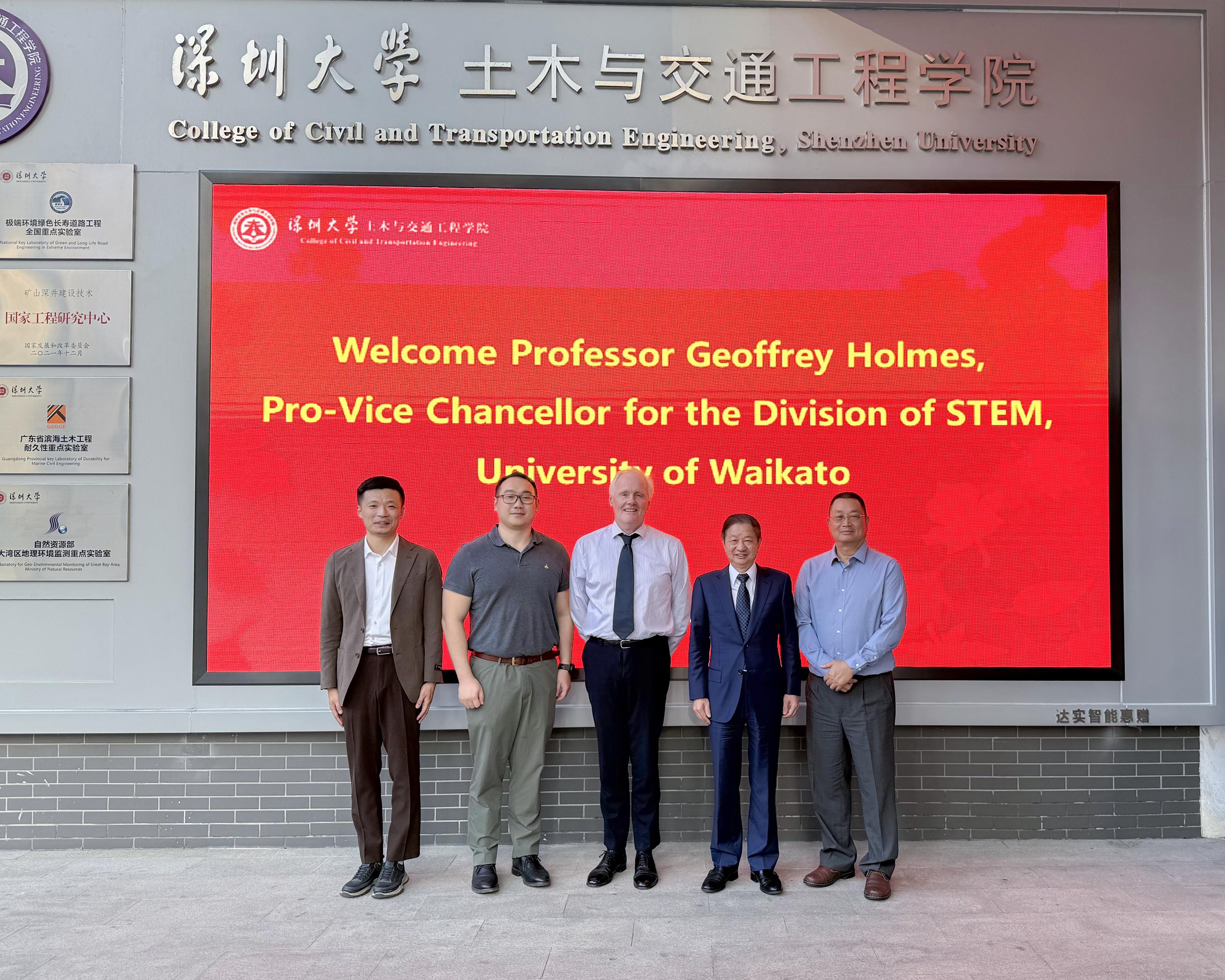 2025年11月17日,深圳大学土木与交通工程学院院长、中国工程院院士陈湘生教授与新西兰怀卡托大学理工学部副校长Geoffrey Holmes教授代表两校签订《深圳大学-怀卡托大学共建可持续发展联合实验室合作协议》。此项合作旨在促进在环境工程与科学、水土劣化机理与修复等生态环境可持续,海洋、深地热能利用和太阳能利用、智能建造、未来人机工程、智慧交通运输等领域的科学研究和先进技术研发,打造高水平国际科研合作和国际化创新人才培养基地。
