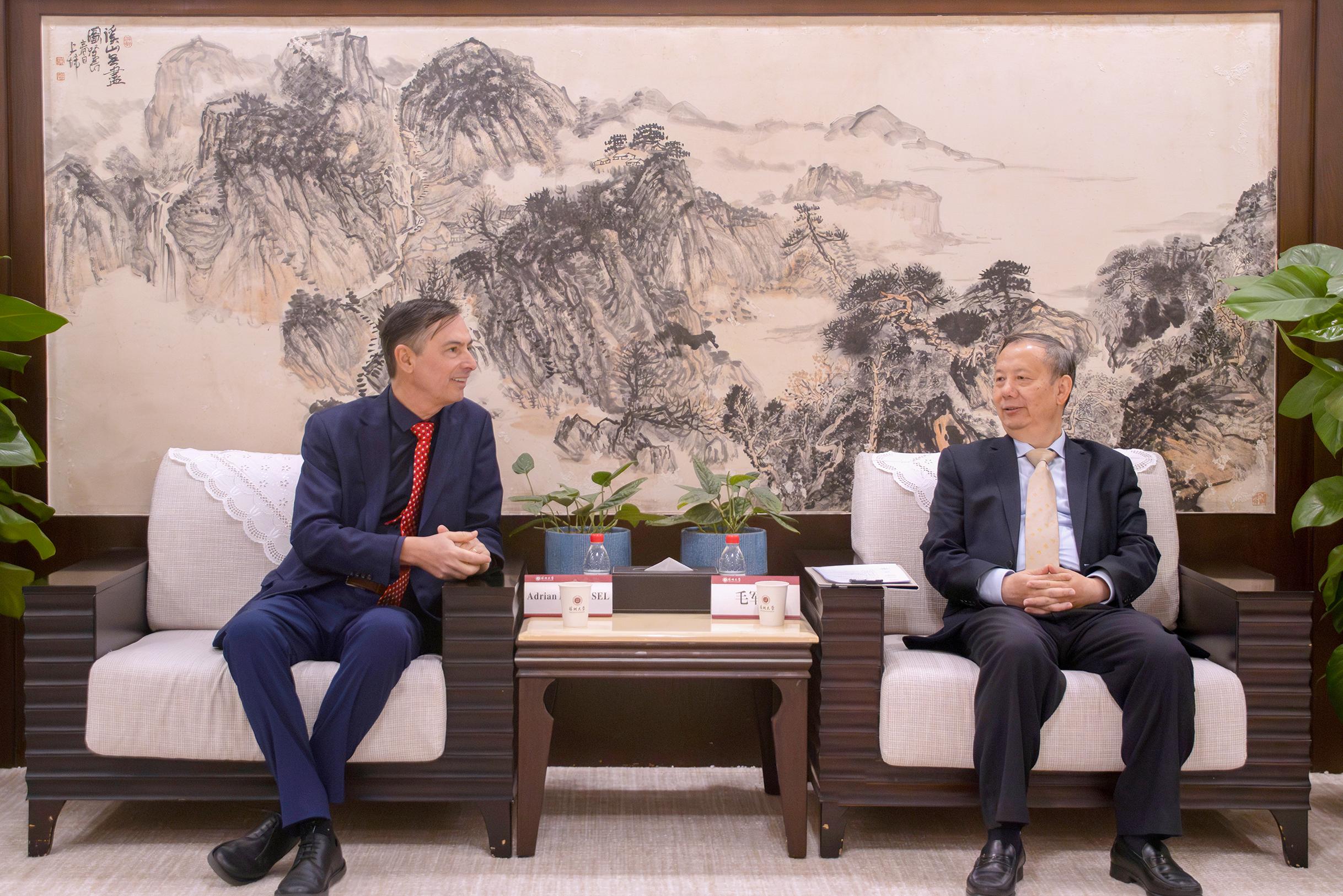 11月19日-20日,罗马尼亚巴比什博雅依大学代理校长阿德里安·彼得鲁塞尔(Adrian PETRUSEL)一行和秘鲁里卡多·帕尔马大学校长费利克斯·罗梅罗·雷维利亚(Félix Romero Revilla)一行先后来到深圳大学访问,深圳大学校长毛军发会见来宾,并分别与来宾展开座谈交流。