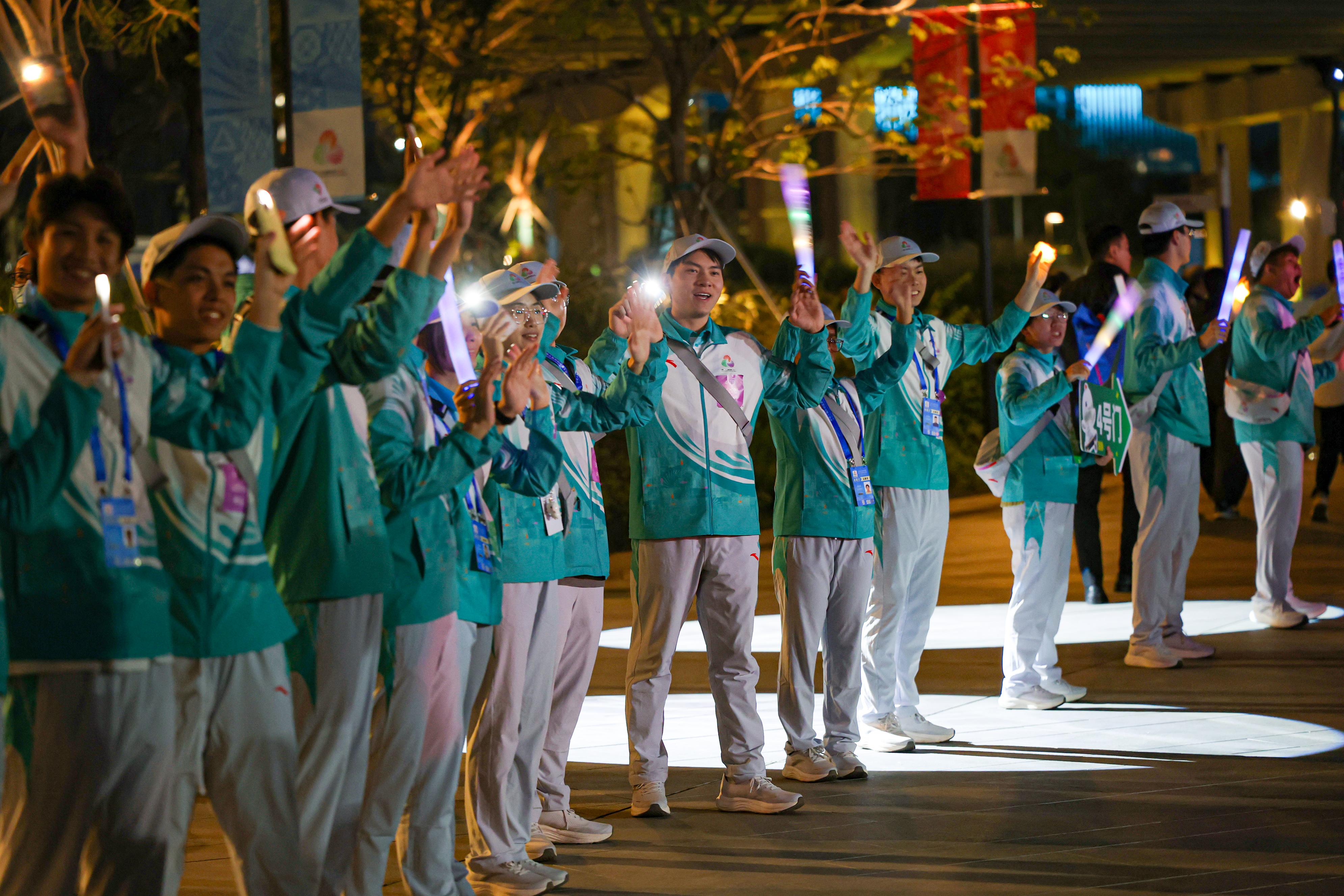 带队老师、体育学院辅导员陈子奕补充道:“更让我感动的是,志愿者们不仅仅是完成了本职工作,更是主动追求满分标准。他们不断优化服务流程,以最完美的状态为闭幕式护航。”