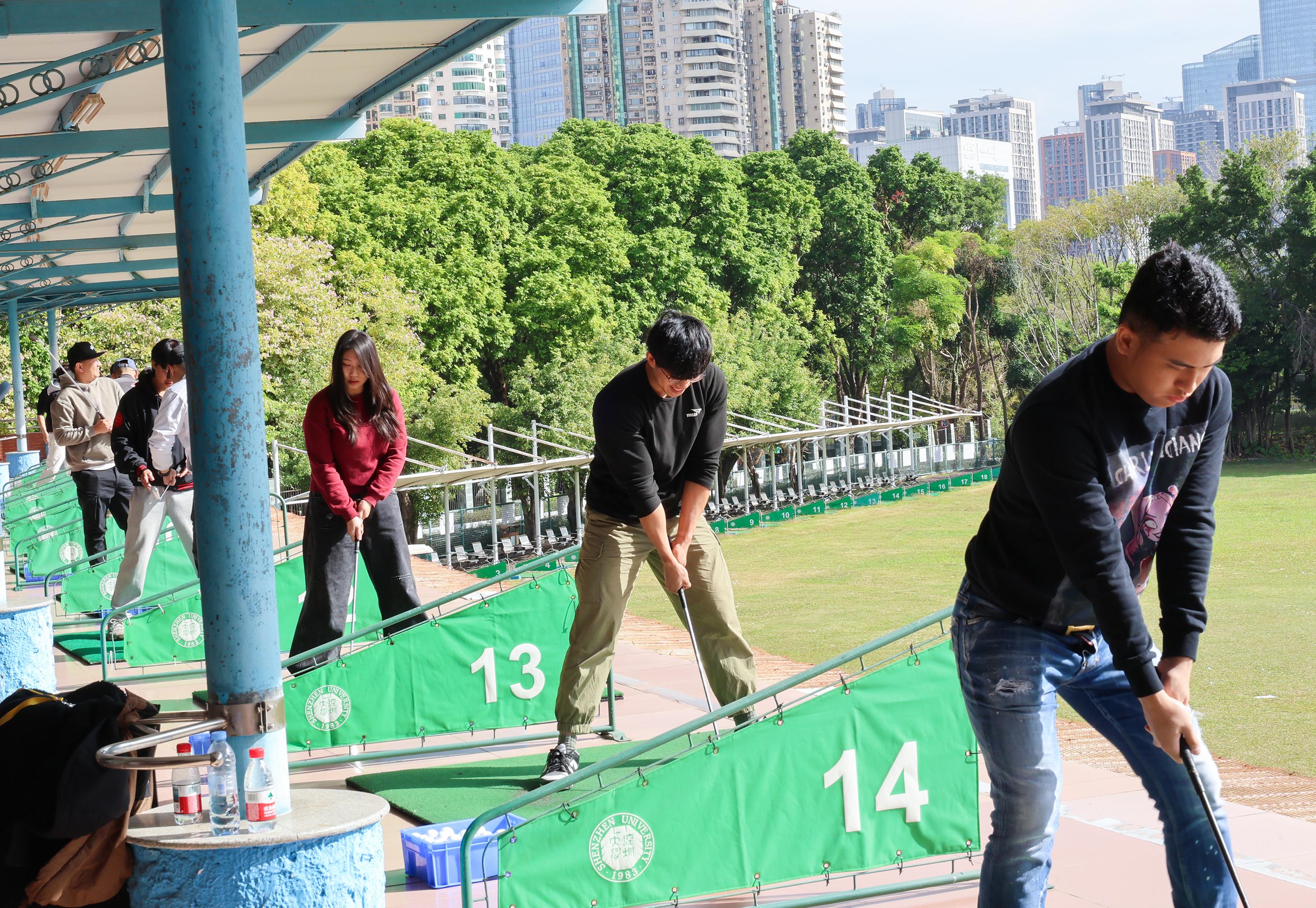 随后,队员们来到深圳大学高尔夫球场,亲身体验高尔夫球特色课程。高尔夫球教练细致讲解动作要领,休闲体育(高尔夫)专业的师生进行动作指导,台湾棒球队员们与深大师生不时互动,为每一次挥杆紧张,为每一杆好球喝彩,彼此的距离在一挥一击间悄然拉近。台湾岭东科大棒球运动选手邱同学分享了自己的高尔夫球初体验:“虽然打完球手臂有点酸,但玩得很开心!”他坦言,能在深圳大学与内地的球员以球会友、畅叙友情的感觉很棒。台湾岭东科大棒球队经理黄同学表示:“大家都非常友善,期待有机会再来深圳参加更多交流活动。”