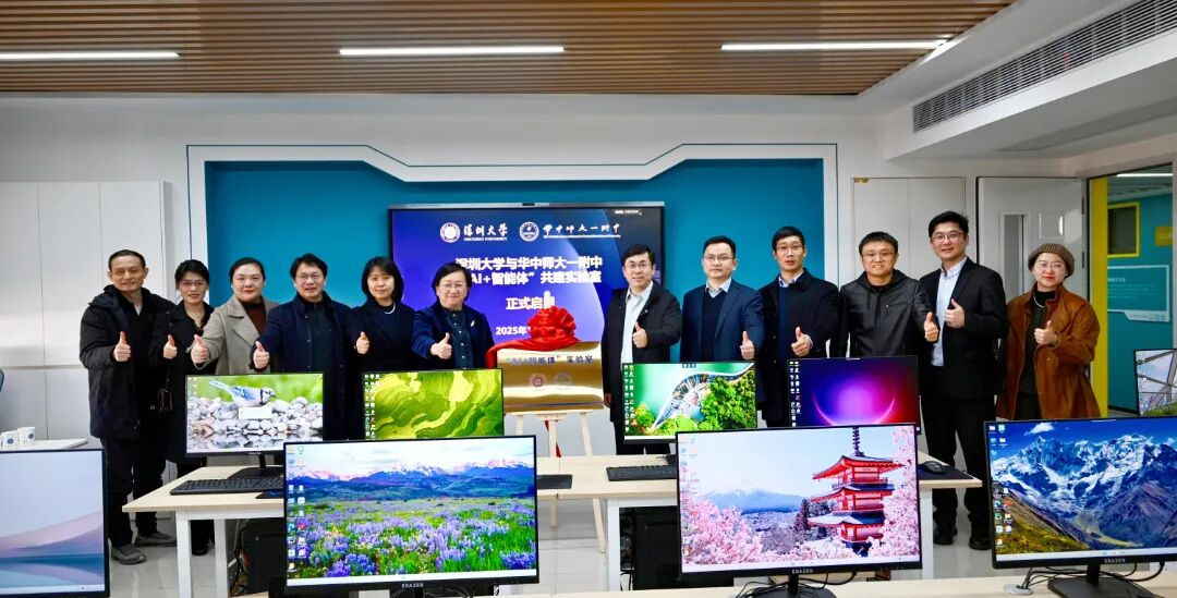2025年12月19日,深圳大学与华中师范大学第一附属中学(以下简称“华中师大一附中”)共建的“AI+智能体”实验室揭牌仪式顺利举行。深圳大学副校长巢乃鹏、华中师大一附中校长徐惠、副校长黄发享等出席揭牌仪式。