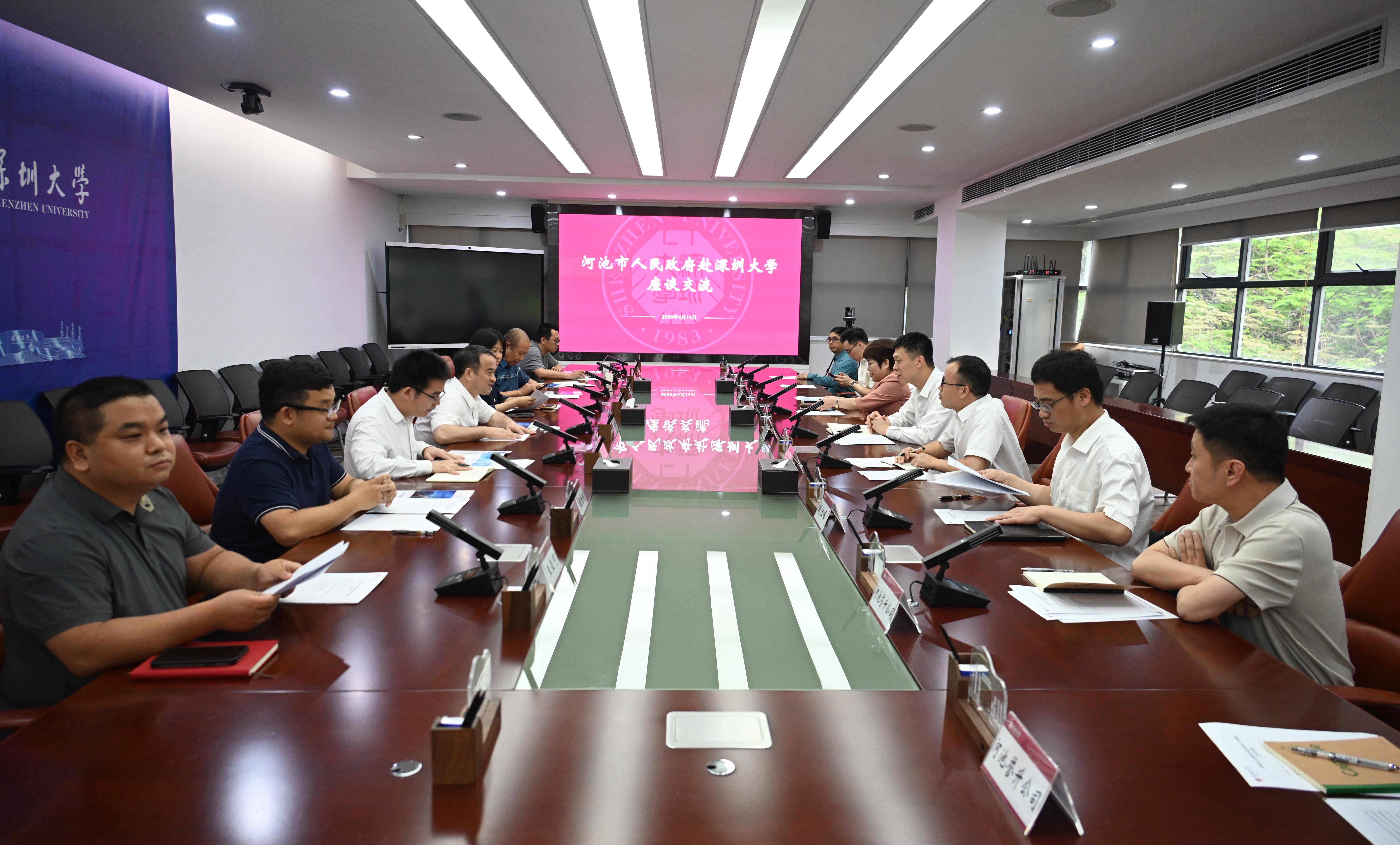 4月14日,广西壮族自治区河池市市长汪东明率考察组来访深圳大学,深圳大学党委书记徐波、副校长周辉在汇元楼205室会见来宾。双方围绕深化校地合作、推动科技成果转化与产业发展进行交流座谈。