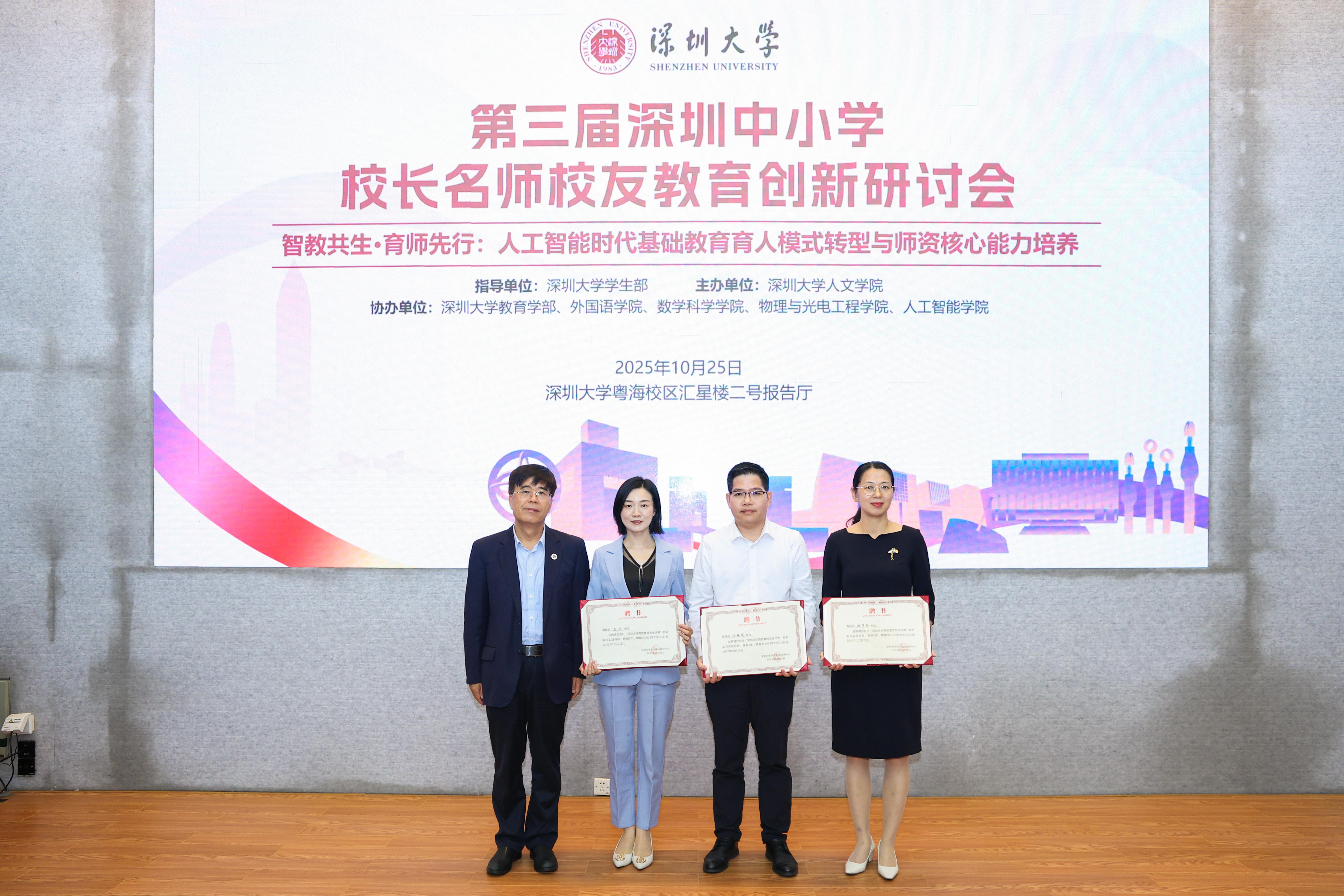 智教共生,育师先行。2025年10月25日下午,由深圳大学学生部指导,深圳大学人文学院主办,深圳大学教育学部、外国语学院、数学科学学院、物理与光电工程学院、人工智能学院共同协办的深圳大学第三届深圳中小学校长名师校友教育创新研讨会在深圳大学召开。