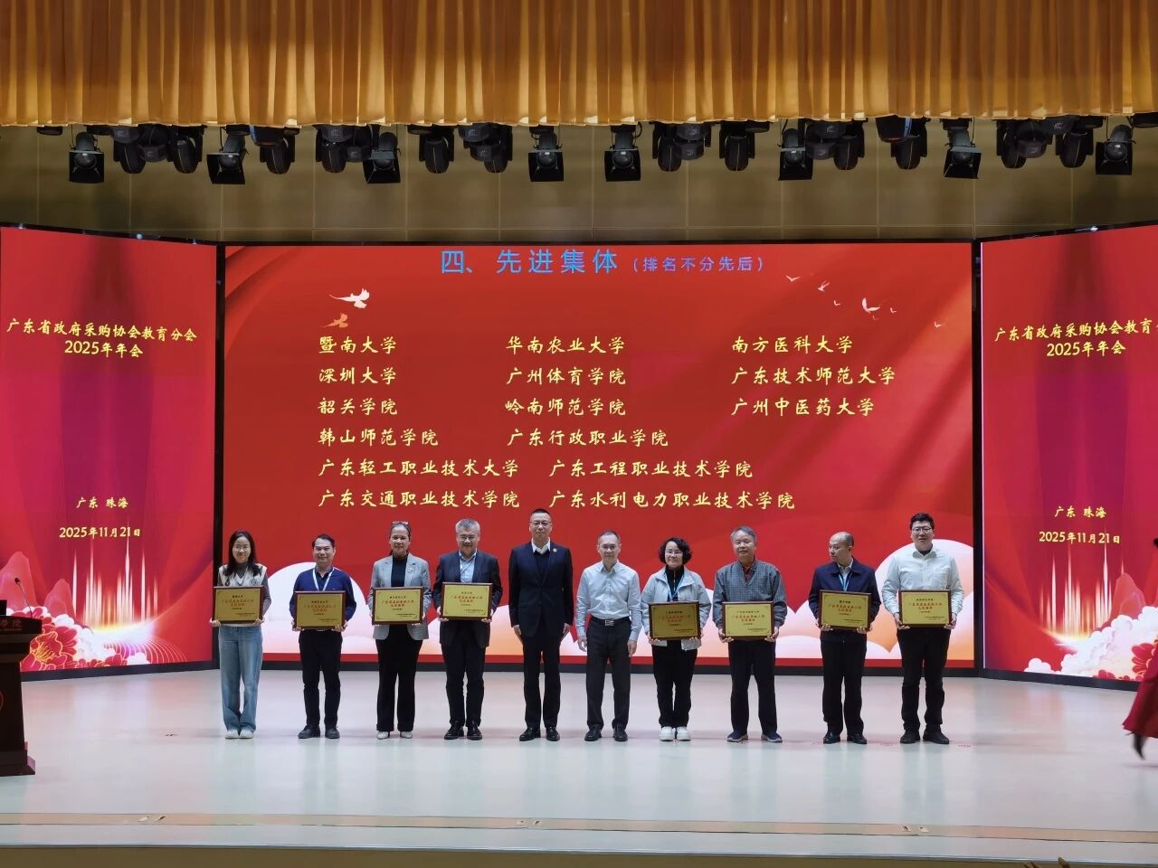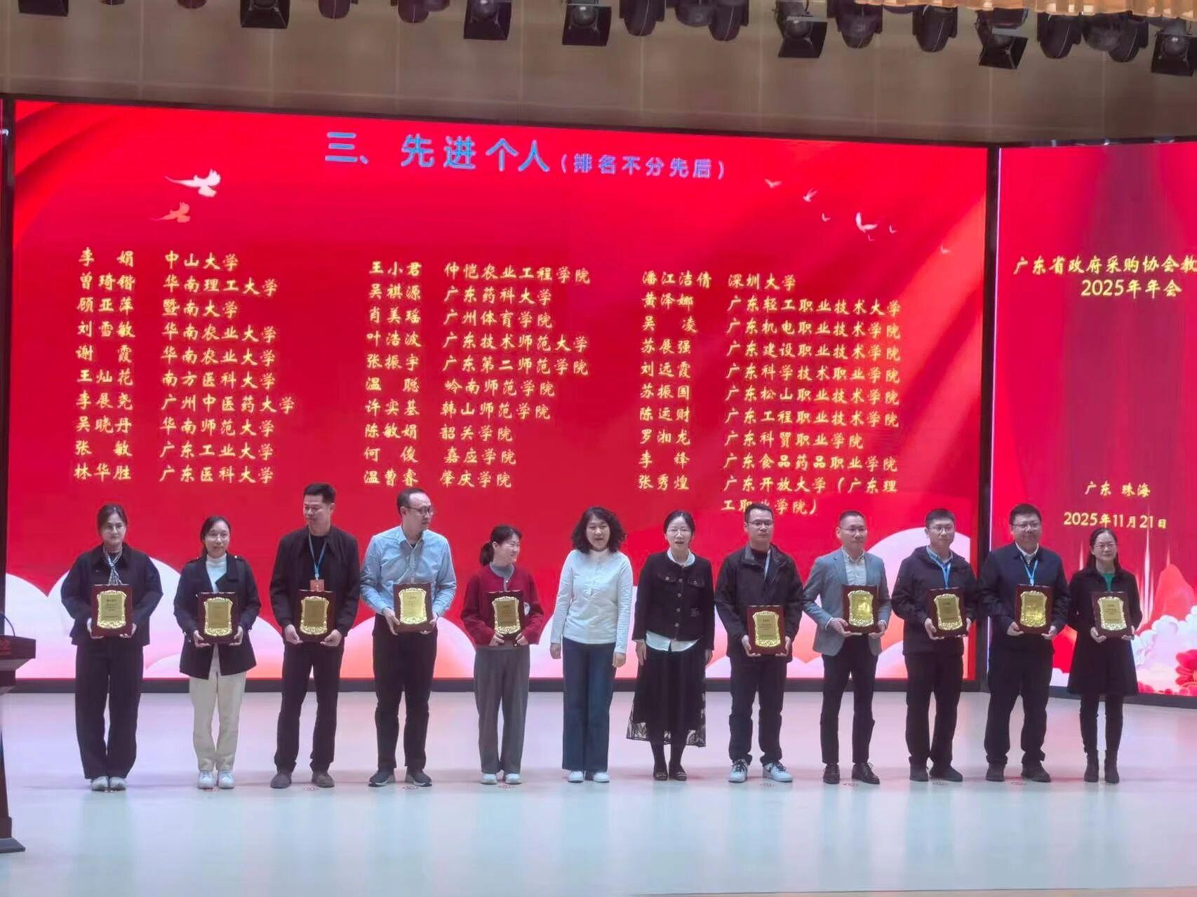 11月21日召开的广东省政府采购协会教育分会年度工作会议上,招投标管理中心又斩获2项殊荣:荣获“2025年度广东省高校采购工作先进集体”;潘江洁倩同志获评“2025年度先进个人”。会上,黄雪峰以“构建管理、服务和内控相结合的地方高校采购体系”为题,向与会人员介绍了深圳大学招标采购工作的探索与实践。