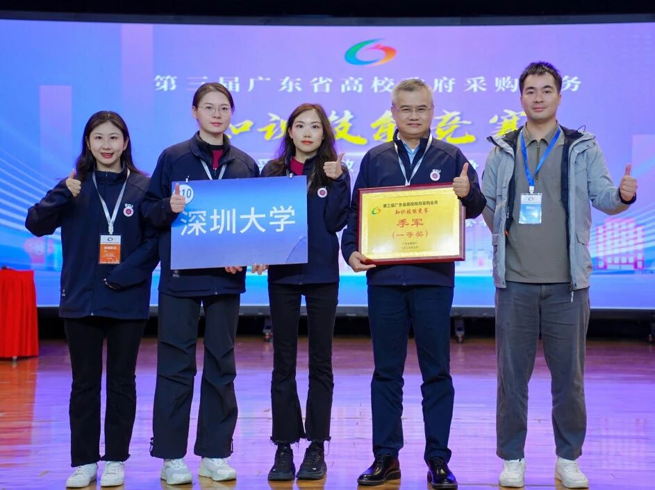 近日,深圳大学招投标管理中心喜报频传,接连获得第三届广东省高校政府采购业务知识技能竞赛一等奖和“2025年度广东省高校采购工作先进集体”称号等省级荣誉,中心潘江洁倩同志还获评全省高校采购工作“2025年度先进个人”。