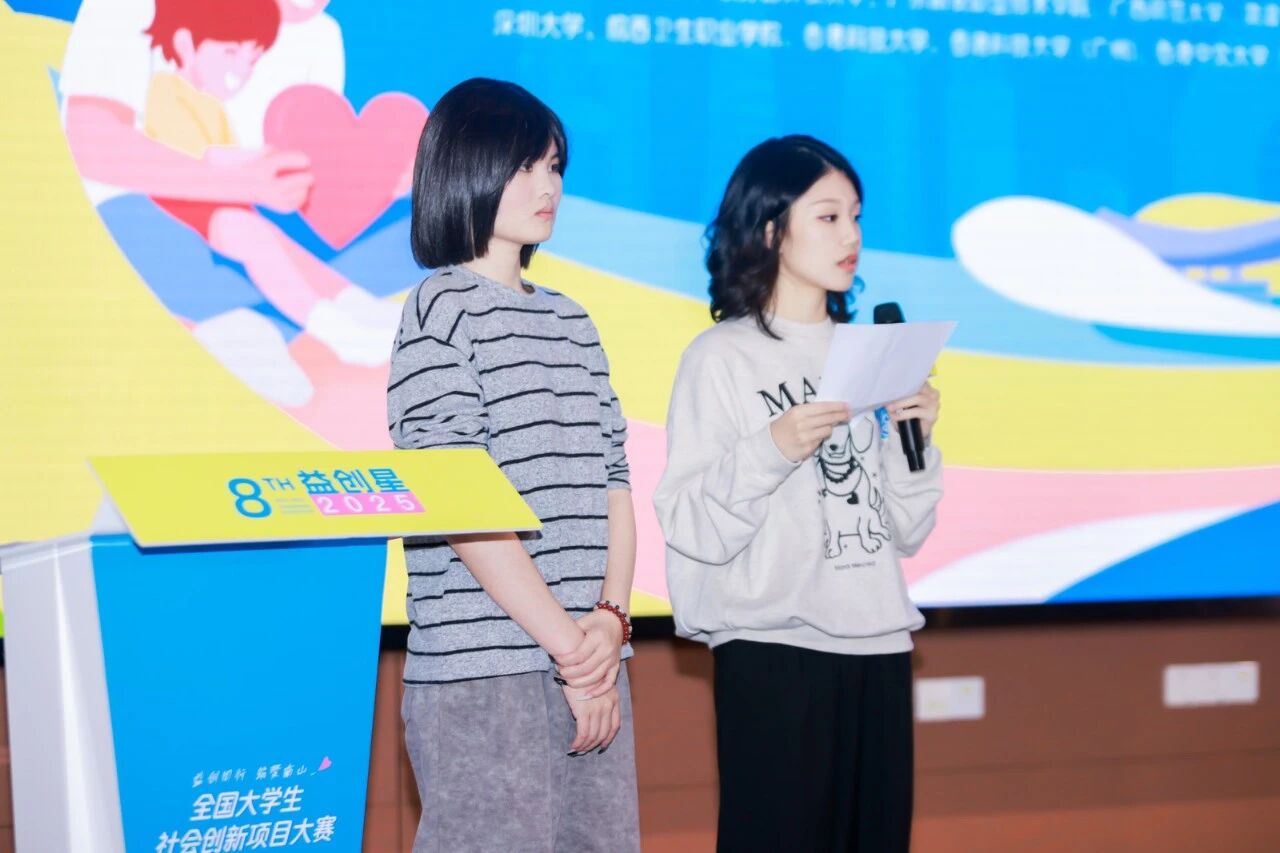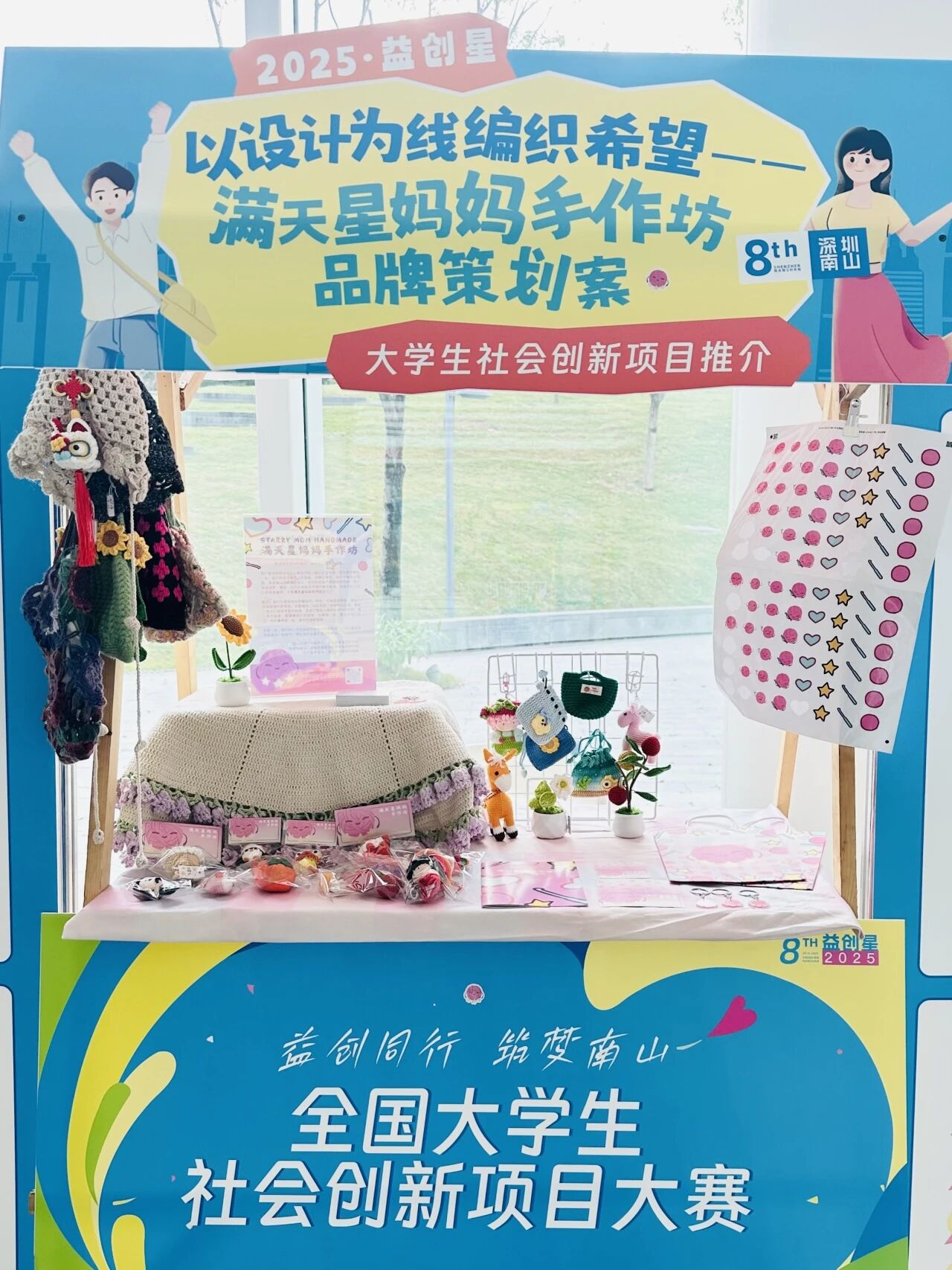 2025年11月15日,“益创星·2025” 深圳市南山区第八届全国大学生社会创新项目大赛决赛圆满落幕。深圳大学艺术学部美术与设计学院创策专业毕业生李依璇、庄颖的“满天星妈妈手作坊品牌策划案”,凭借其创新性和社会价值,一举夺得民生公益赛道铜奖,并斩获最佳人气纪念奖。本次大赛聚焦民生公益与科技创新,吸引了来自全国105所高校的245个项目同台竞技。该获奖项目源于学院创策专业核心课程《社会创新设计》的孵化,后经深化成为落地执行的毕业设计,是学生自主创新能力的生动体现。