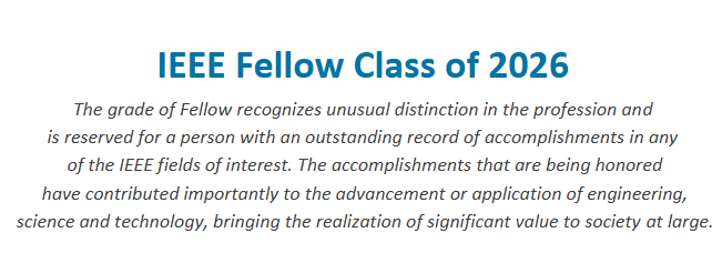 IEEE Fellow,为协会最高等级会员,即IEEE会士,是该组织授予的最高荣誉,每年由IEEE同行专家在拥有高级(Senior)或终身(Life)等级的会员中遴选约300名左右。当选人需要对工程科学技术的进步或应用做出重大贡献,为社会带来重大价值。当选人数不超过IEEE当年会员总人数的0.1%。该头衔是学术界和科技界公认的权威荣誉和重要职业成就,当选者基本都是在科学与工程技术领域内取得重要成就的杰出科学家,含金量极高。