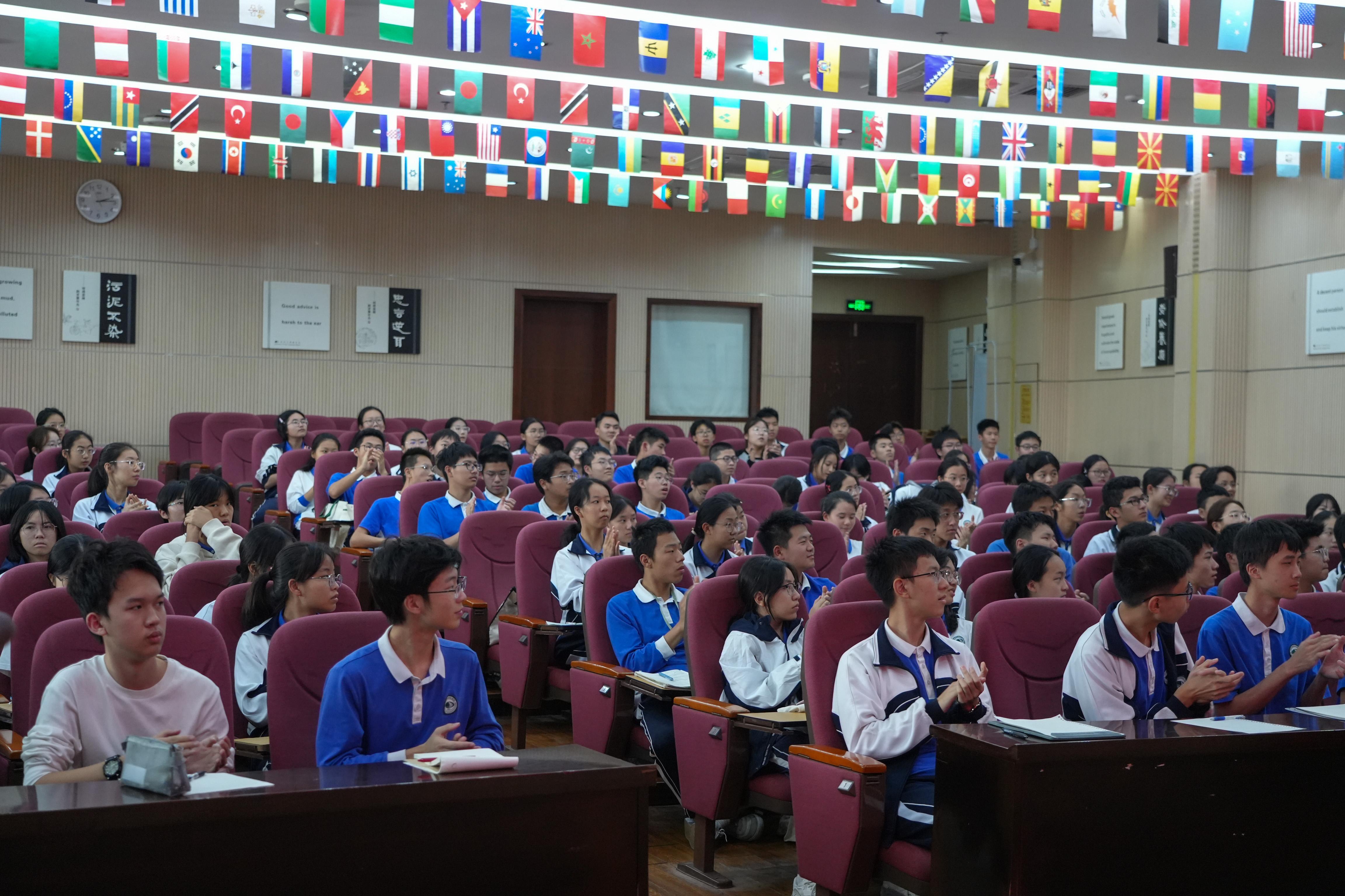 在深圳外国语学校(集团)高中部,沈维孝作了题为《多项式的寻根之旅》的生动讲座。深圳大学数学科学学院副院长胡耀华,深圳外国语学校(集团)副校长光磊、文理书院副主任史世峰,与师生代表共同参加了活动。