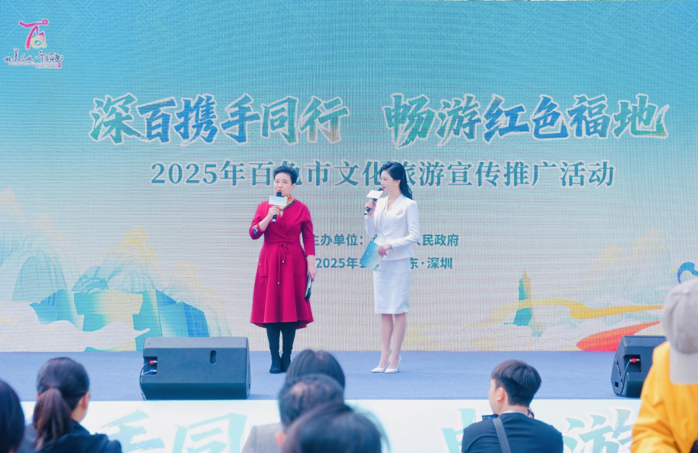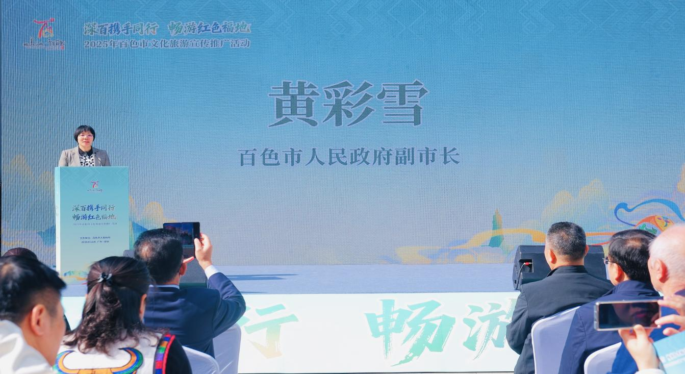 宣传推广活动以进商圈的形式展开,极大提升了活动覆盖面和公众参与度。活动现场设置了各县(市、区)特色文旅商品展位,推出百色精品旅游线路及研学线路,同时提供旅游咨询服务,为市民提供“一站式”百色文旅体验。暖场环节播放了百色红色文化、山水风光、民族风情等宣传片,全方位呈现百色独特魅力;民族特色文艺表演轮番上演,展现百色文化韵味。推介会上重点推介百色特色旅游资源和“红色文化+喀斯特地质研学”产品,百色城产集团、右江区、德保县分别介绍了星河旅游度假区、梵木·百色水岸城、福禄综合体、印象那西、矮马王国景区及吉星岩等特色文旅新项目、新业态,多角度展示百色丰富的旅游价值。