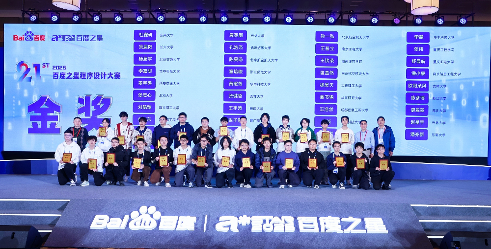 2025年12月,第21届百度之星程序设计大赛决赛在北京成功举办。本届大赛吸引来自全国顶尖高校的近千名选手同场竞技,经过激烈角逐,深圳大学廖昱堃、林文伟、王荟斐、邹文博、肖俊祺、梁展宇、温家燊、岑健锋和邹瀚泓9位同学分别获得全国总决赛1金奖、6银奖和2铜奖的好成绩。这是深圳大学在该项赛事上首次获得金奖,实现突破!