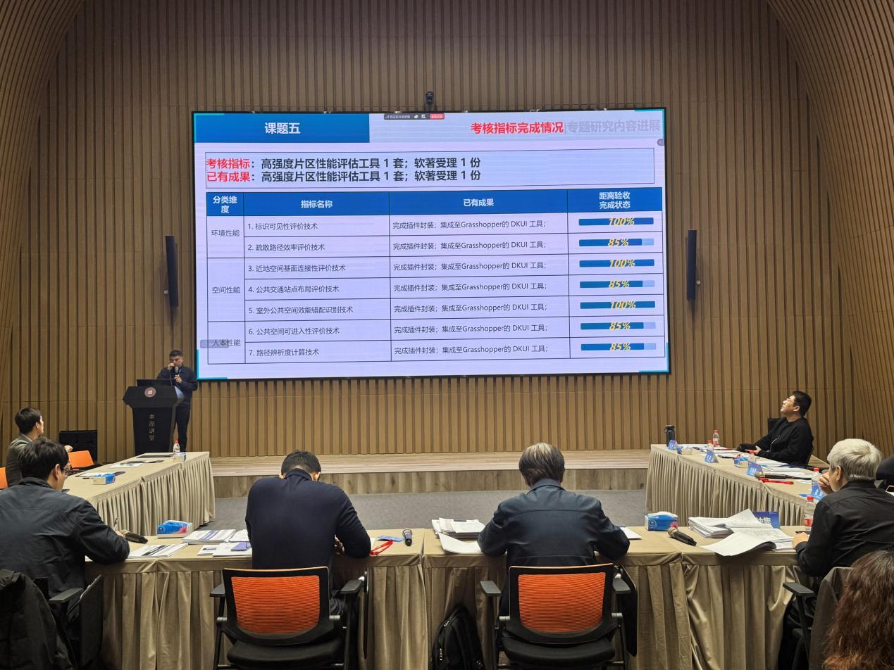 1月18日至20日,会议组织开展课题交流、实地考察研讨与指标审查。指标审查环节邀请了国家建筑绿色低碳技术创新中心顾问总工、教授级高工郝军,山东大学齐鲁交通学院院长、二级教授、高端工程机械智能制造全国重点实验室副主任李利平,中国建筑科学研究院有限公司副总建筑师、教授级高级建筑师常钟隽,西安建筑科技大学交叉创新研究院常务副院长、二级教授王登甲,以及课题一负责人东南大学教授金俊、课题二负责人天津大学教授刘刚、课题三负责人兼项目执行负责人深圳大学教授付本臣、课题四负责人北京建筑大学教授、全国工程勘察设计大师胡越、课题五负责人深圳市建筑设计研究总院有限公司执行总建筑师杨旭,作为评审专家针对研究内容提出专业建议,强化了项目整体协同。