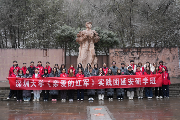 演出前后,深圳大学传播学院马克思主义新闻观创意传播与实践党支部成员与《亲爱的红军》剧组开展了为期三天的深度研学活动。团队先后走进枣园革命旧址、张思德广场、杨家岭革命旧址等地,通过集体诵读、专题学习等形式,深刻体悟“全心全意为人民服务”的宗旨内涵,进一步领会延安精神的时代价值。